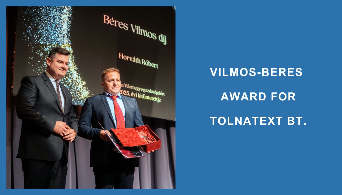 Our managing director, Róbert Horváth, was awarded the Vilmos Béres Prize for the Economy of Tolna County at this event.