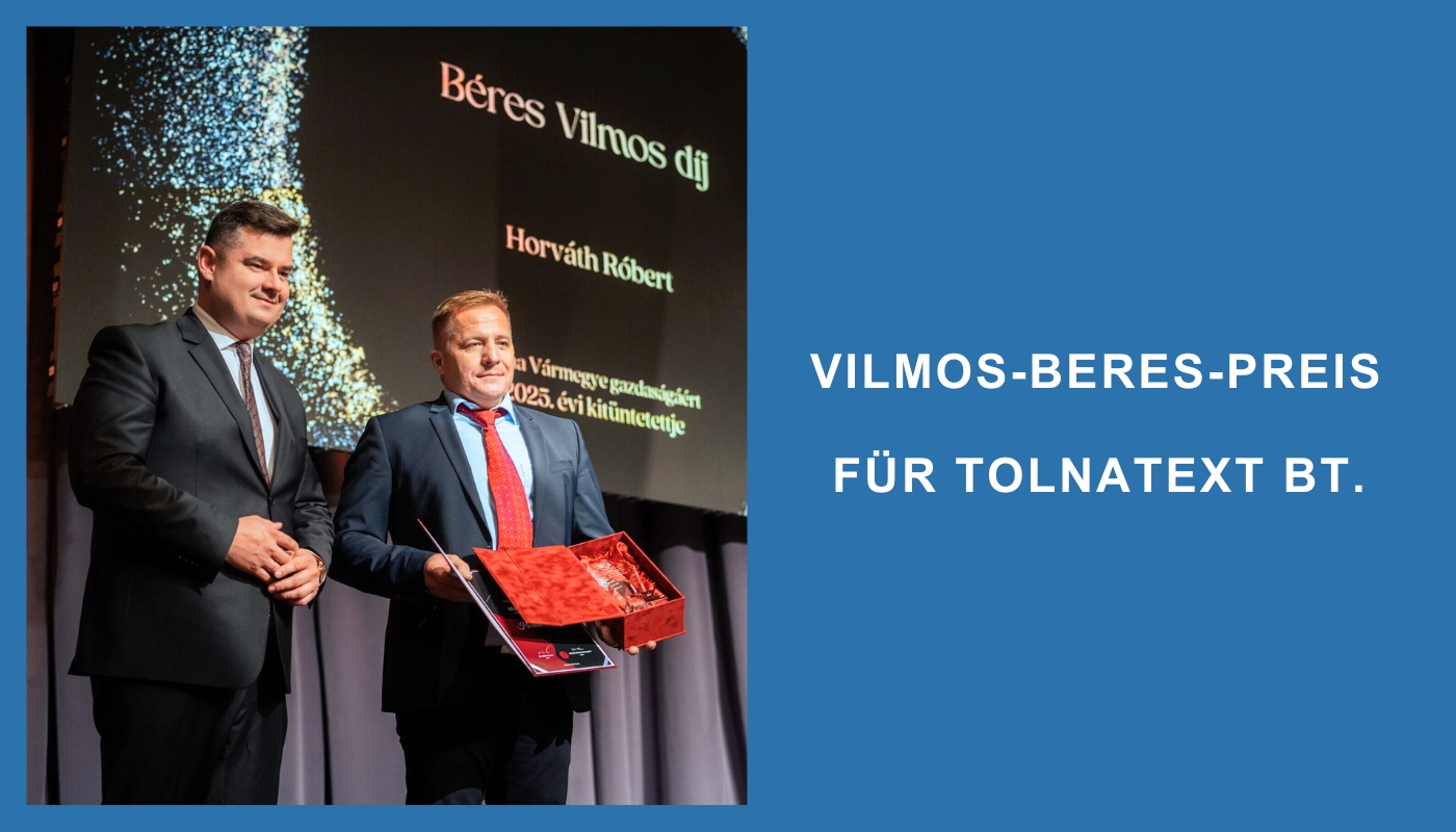 Die Ehrung stellt eine Anerkennung der Leistung des gesamten Teams unserer Tochterfirma Tolnatext Bt. dar und unterstreicht die Bedeutung regional verankerter Unternehmen.